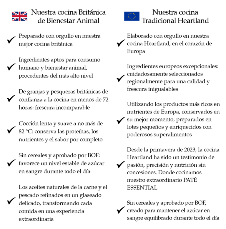 Dos cocinas, una misma filosofía. La Cocina Británica de Bienestar Animal, con ingredientes y recetas inmejorables y carnes que respetan a los animales y su bienestar en todo su ciclo de vida. La Cocina Tradicional Heartland, con ingredientes europeos de altísima calidad y más materias primas provenientes de la ganadería tradicional. Tú eliges. Y lo haces sin temor a equivocarte.