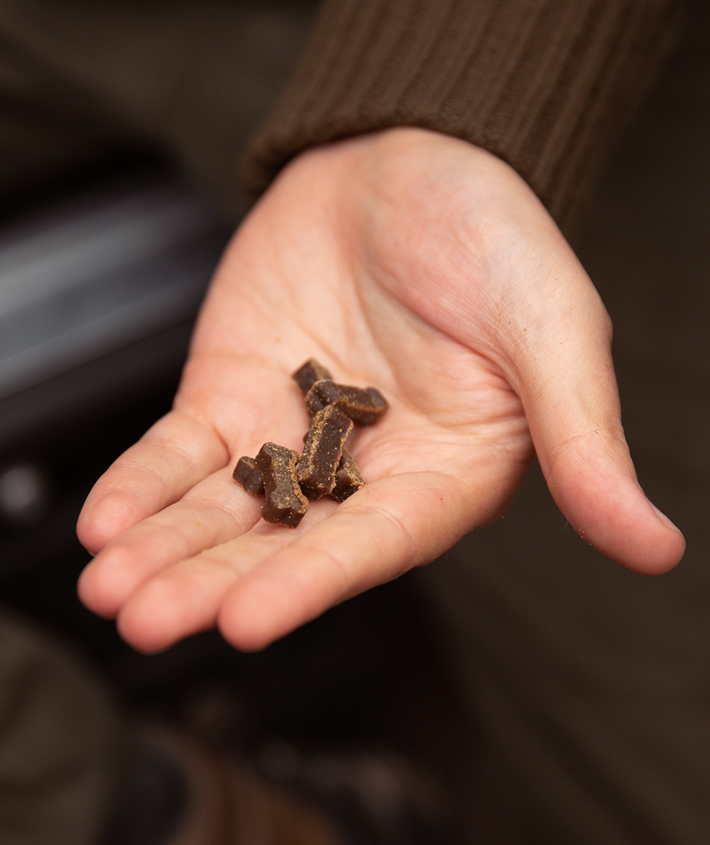 En la práctica, este método mantiene estable el nivel de azúcar en sangre del perro; el alto contenido de carne fresca estimula sus instintos; la baja temperatura de cocción preserva el valor nutricional; las bayas, semillas y hierbas evocan el contenido estomacal de sus presas naturales; y el tamaño de las croquetas garantiza que el perro mastique bien la comida y no la trague entera.