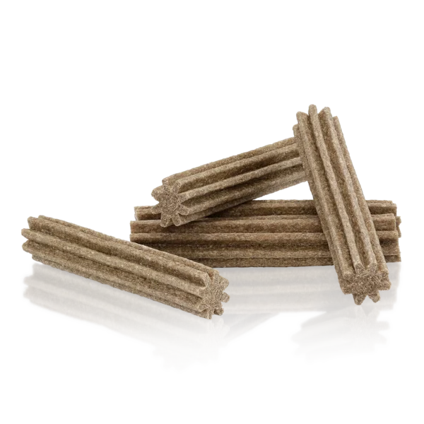 Su forma de estrella y su textura semihúmeda son excelentes puntos de partida para una limpieza dental eficaz. Además, contiene SHMP y menta para ayudar a prevenir la acumulación de placa y probióticos para la salud intestinal.
