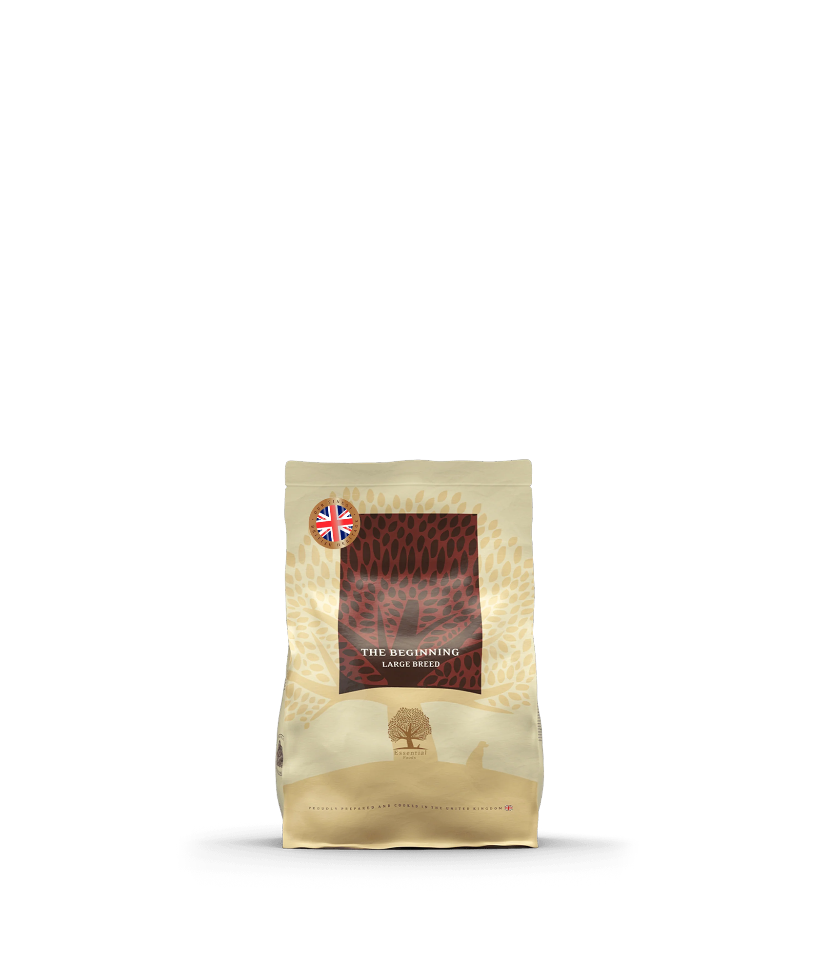 ESSENTIAL THE BEGINNING – LARGE BREED está específicamente formulado para cachorros y jóvenes que pesarán más de 15 kg en la edad adulta. La comida está desarrollada para apoyar perfectamente esta etapa espe-cífica de crecimiento delicado por la que pasan los perros más grandes. LARGE BREED sigue nuestro Principio de BOF y es LIBRE DE GRANO. Recomendamos servir THE BEGINNING LARGE BREED hasta la edad de 13-18 meses.