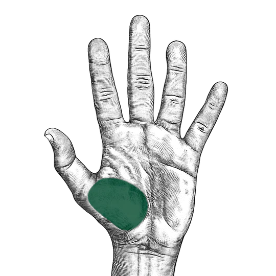 Con la palma aún hacia arriba, ahora desliza los dedos sobre la base del pulgar. Si la caja torácica de tu perro se siente así (difícil de sentir bajo una gruesa capa de grasa), su condición corporal es obesidad.