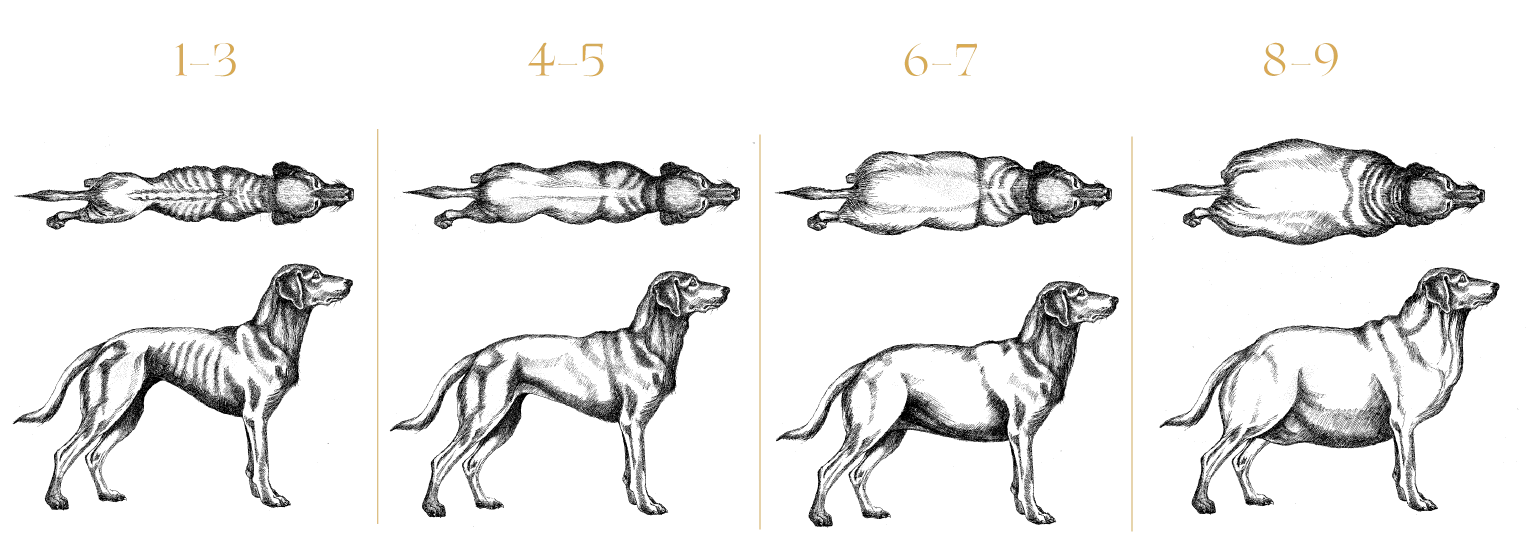 El puntaje de condición corporal (BCS) es una escala simple del 1 al 9 que utilizan los veterinarios para describir cuánta grasa corporal tiene un perro; en otras palabras, qué tan cerca está de su forma más saludable.